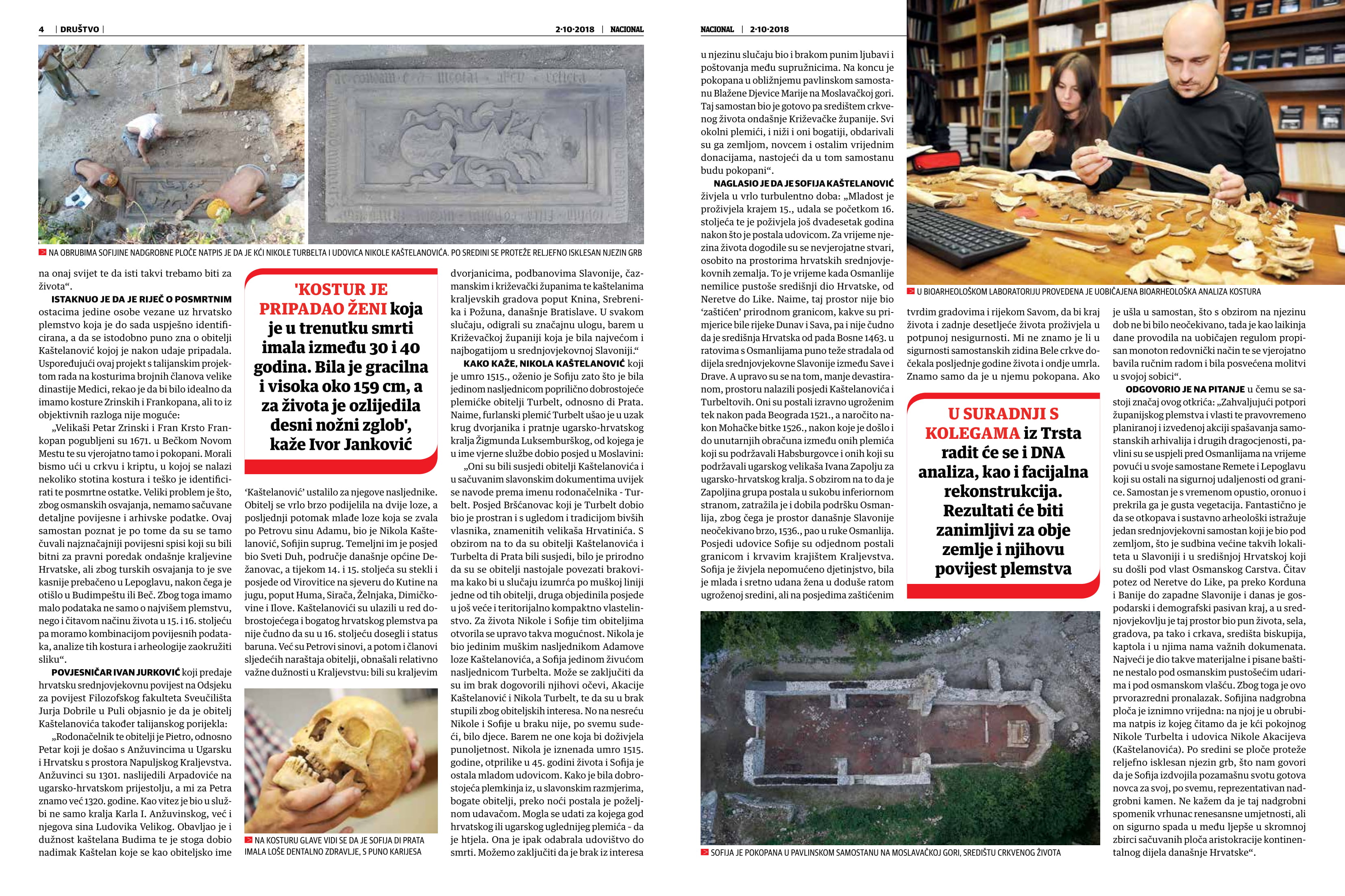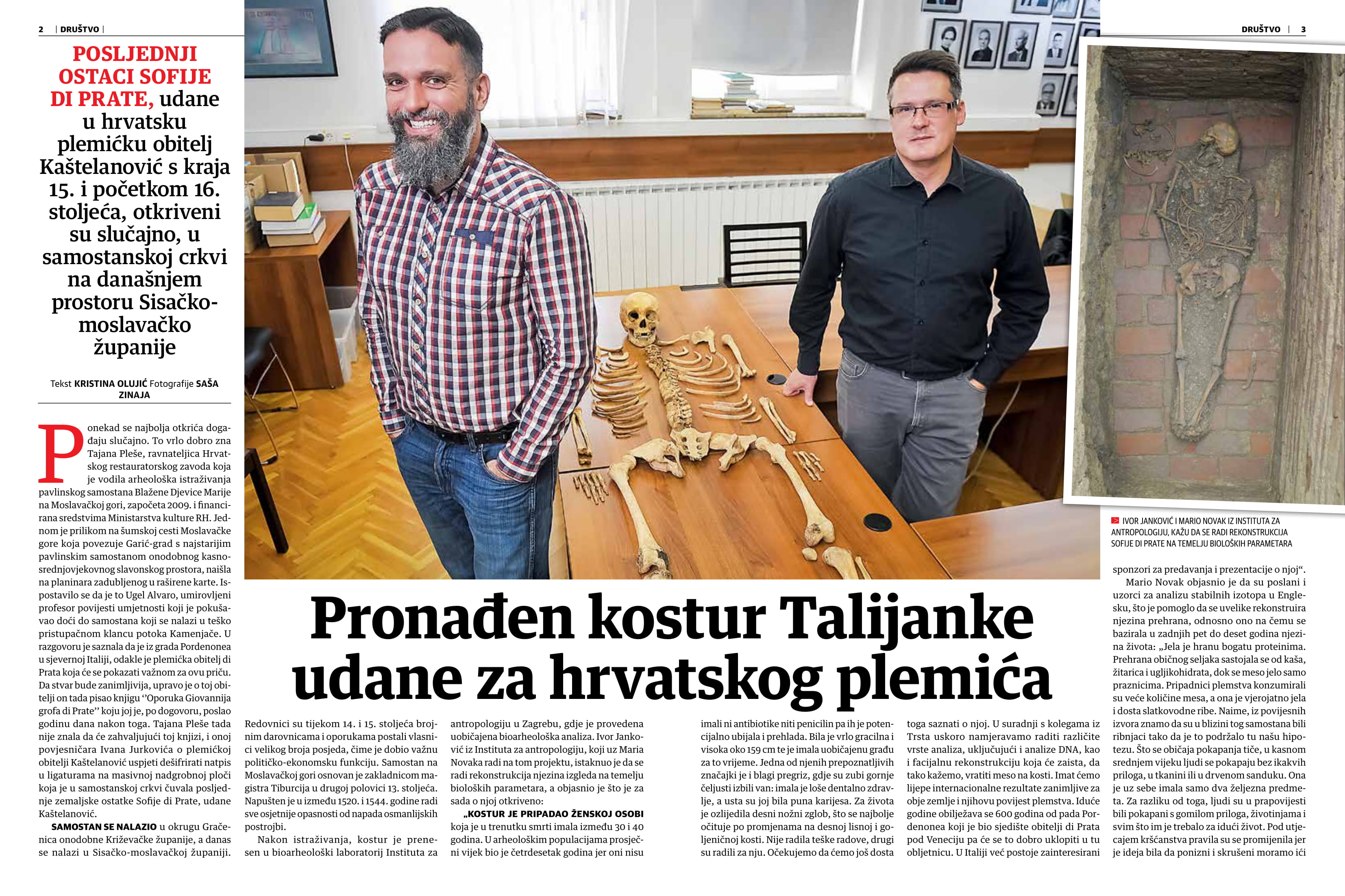 Znanstvenici instituta dr. sc. Mario Novak i dr. sc. Ivor Janković sudjeluju u međunarodnom istraživanju ostataka plemkinje Sofije di Prate.